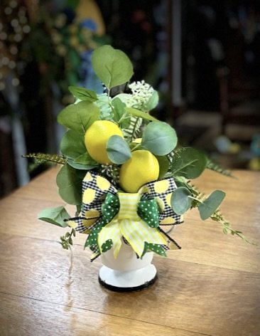 > Lemon Centerpiece, Vintage Cup w/ Handles